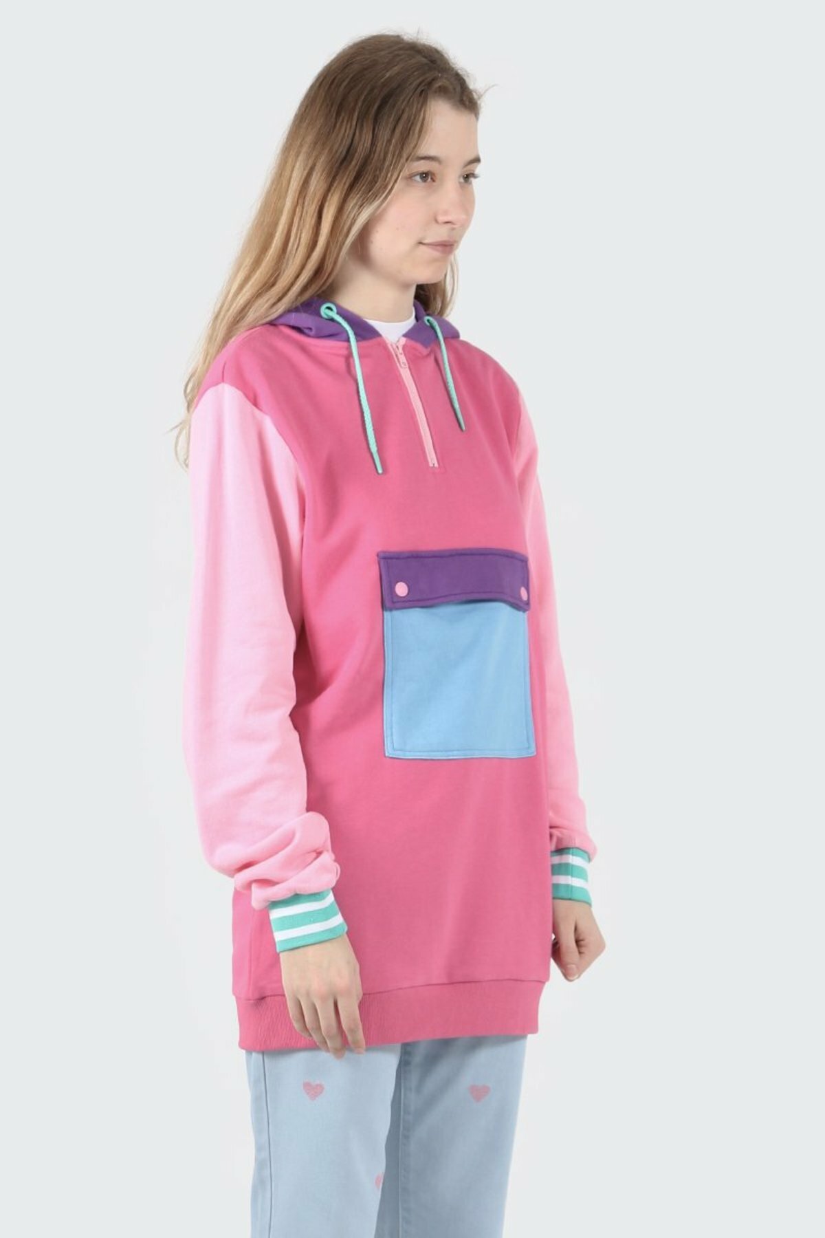 - Contrast hoodie and cuffs